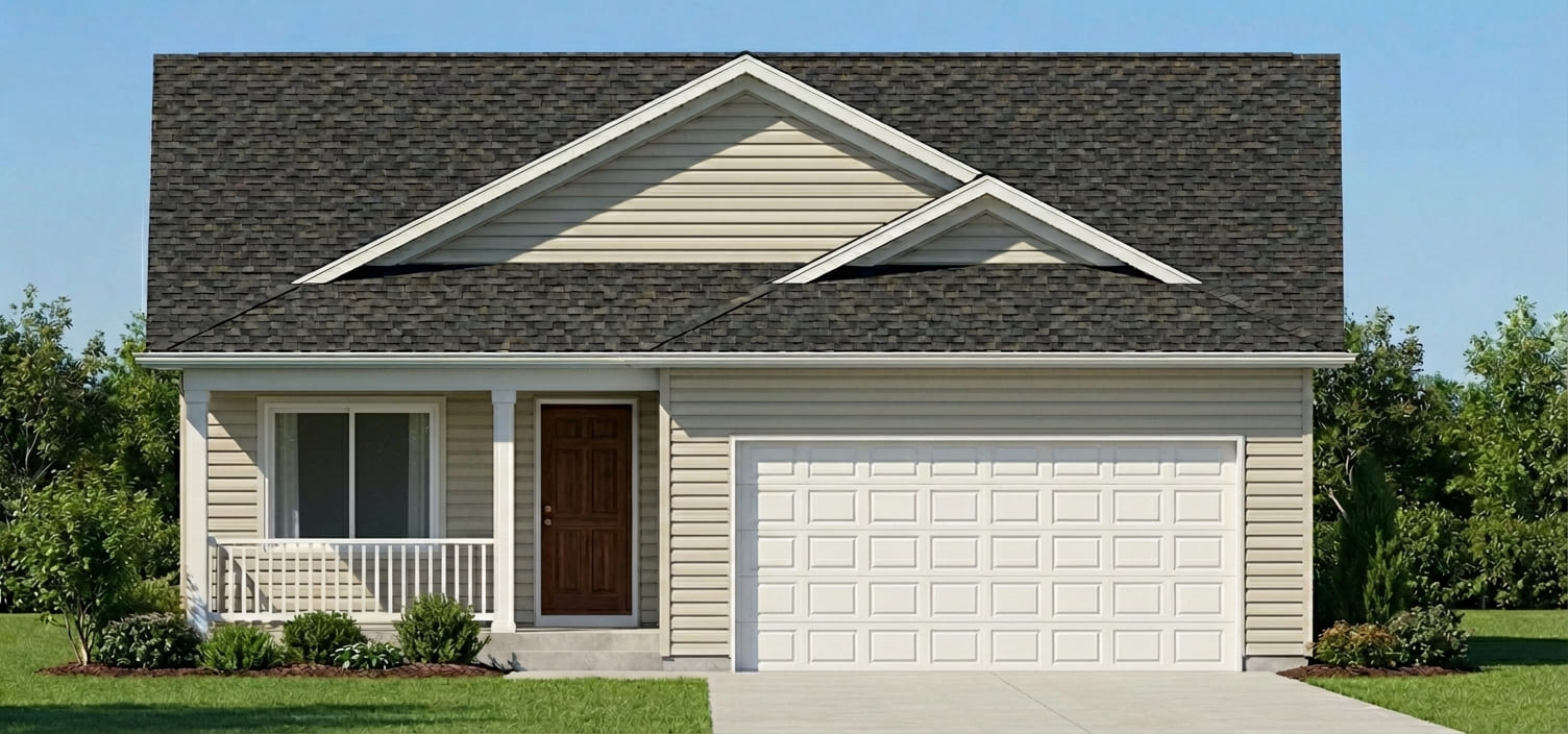 This custom home ranch design may be small but space is utilized to make to make it seem huge! This is a perfect starter home for a small family! The main floor master bedroom is located in the rear of the house and easily eliminates road noise, this bedroom includes a master bath and walk-in-closet that conveniently opens directly into the laundry room. The second bedroom is located in the front of the house and can easily be used for children or an office. The kitchen is wide open to the dining room and living room that have the popular cove ceiling. If extra bedrooms are what you need they can easily be placed in the basement.
