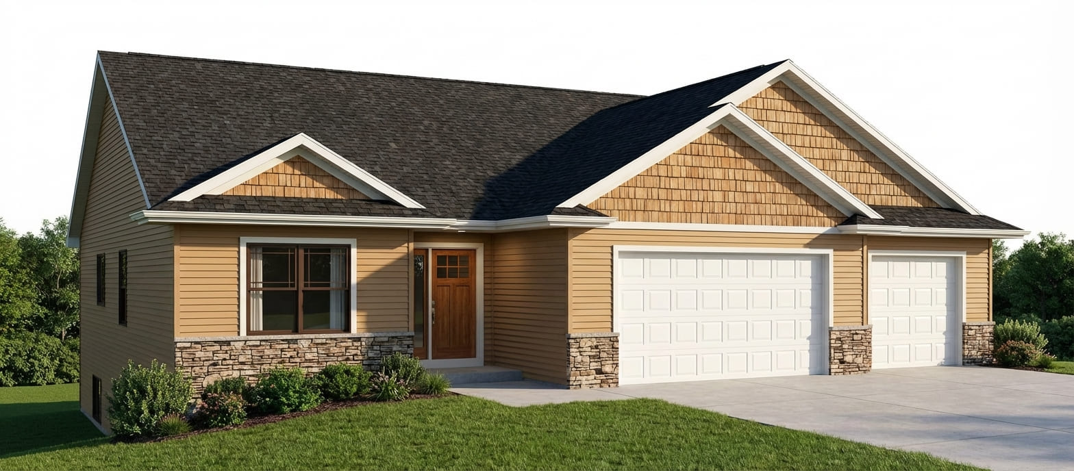 This fantastic looking Prull Custom Ranch design has all the makings of a “homey” home. It features great curb appeal with a wrap around porch that is great for watching sunrise/sunset. It offers a large open kitchen to dining room to great room on the main level giving the house a nice open look. The main level master suite is inviting with a large walk-in-closet and a fantastic double sink, shower and whirlpool tub master bath. The second bedroom just a hop away, an ideal location for a great nursery! The 3rd bedroom can also be interchangeable as a den or study area. A 3 stall garage marks territory for great storage of vehicles and extra man toys.