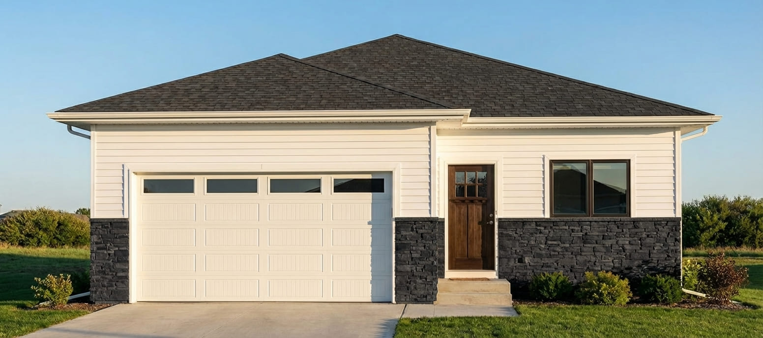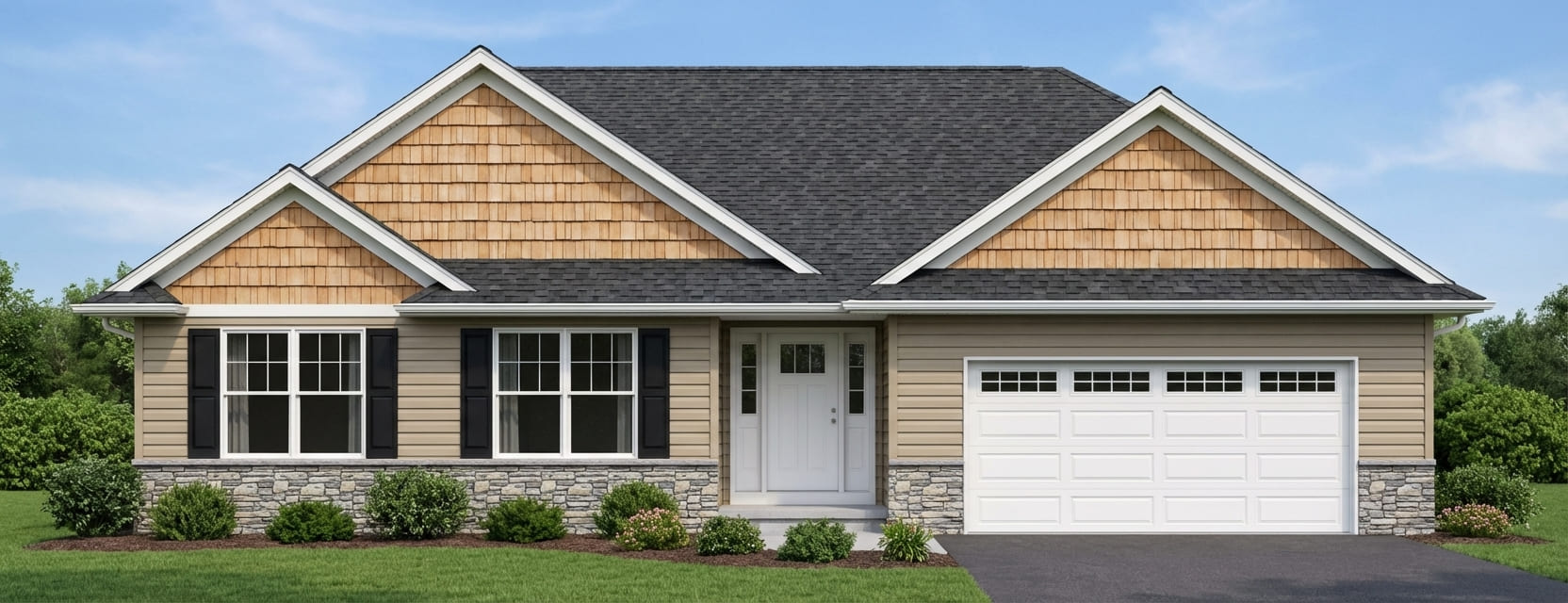 This quaint Prull design is a great little starter home! It has all the necessities for the simple life. This 2 bedroom home has a kitchen/dining room combo that opens to a screened porch. There is also a laundry and half bath separating the kitchen and garage. Master suite has a walk in closet and the master bath optimizes space by using it as a main bath as well. The 2 stall garage has a nook area for additional storage. More storage can be obtained by finishing off the basement.