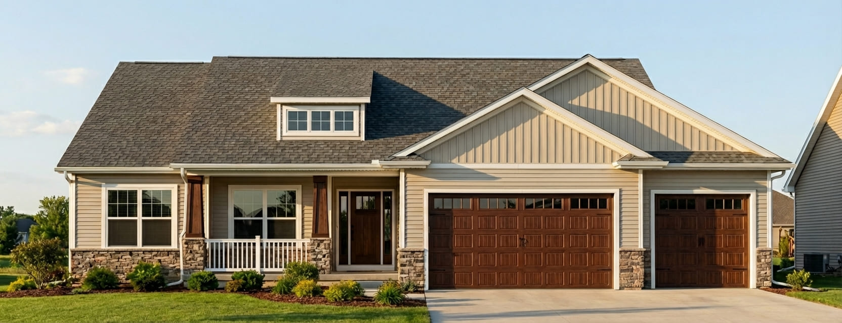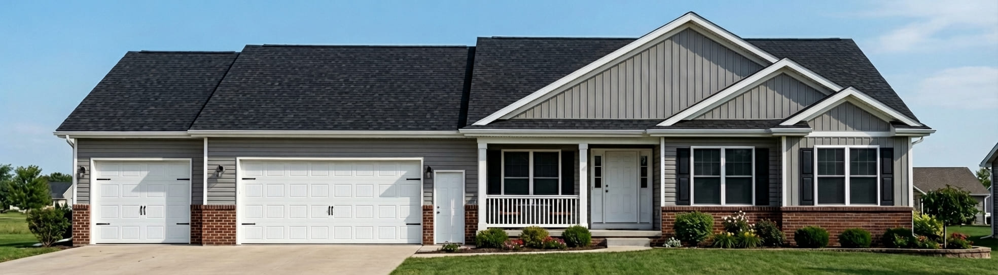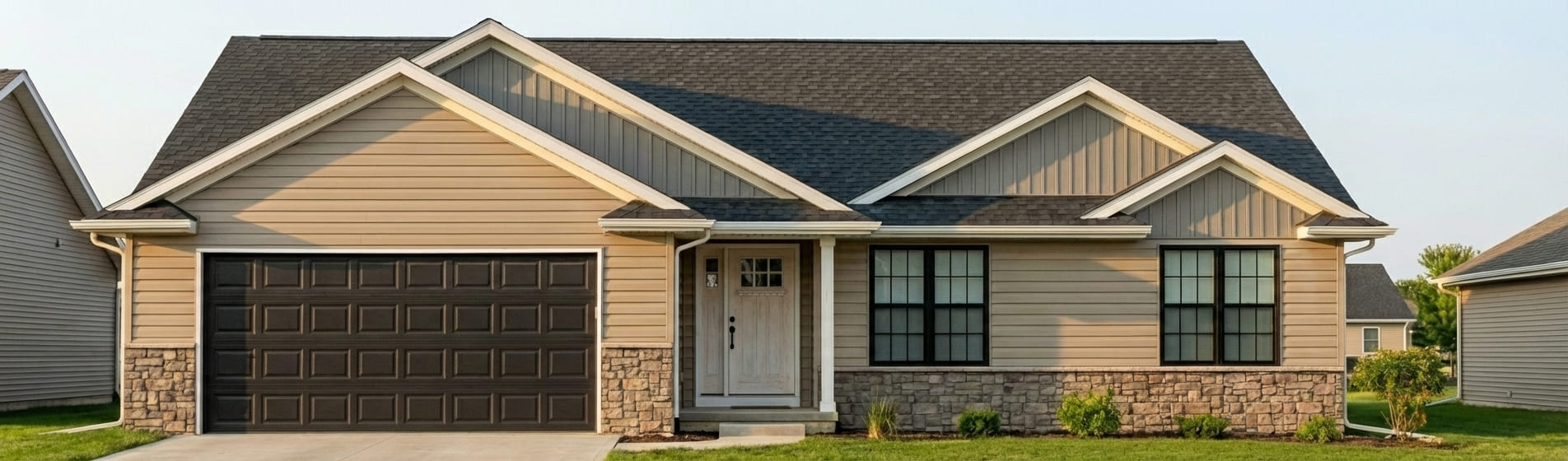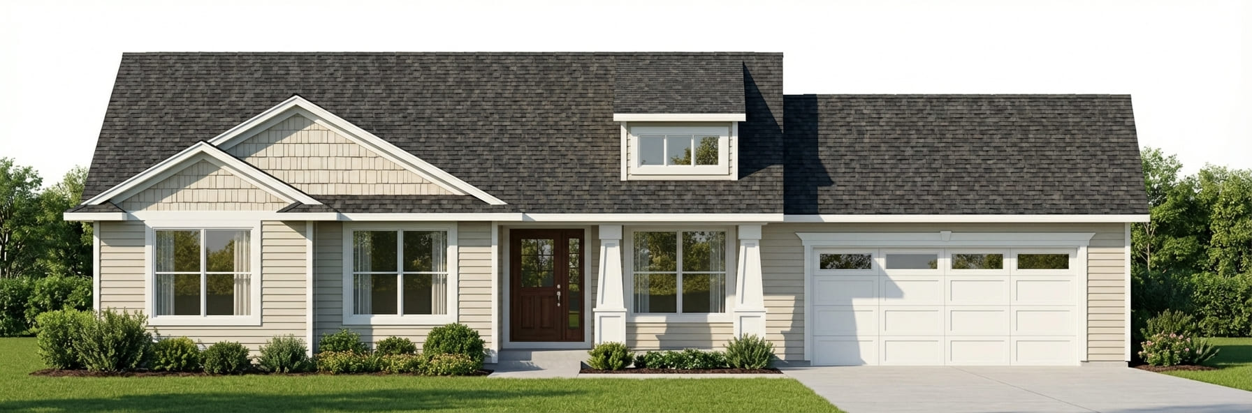Looking for a great starter home but want something new? This plan is for you! Check out this quaint 1300+ square ft ranch design. This 3 bedroom design is a great at utilizing space for optimum living. This open floor plan allows you to flow freely from kitchen to dining room and living room making it easy to keep track of the little ones but allow you to keep working in the kitchen. The laundry is located on the first floor off the garage for convenience of dumping dirty outside clothes. A 3 stall garage is great for keeping your extra outside toys out of the elements.