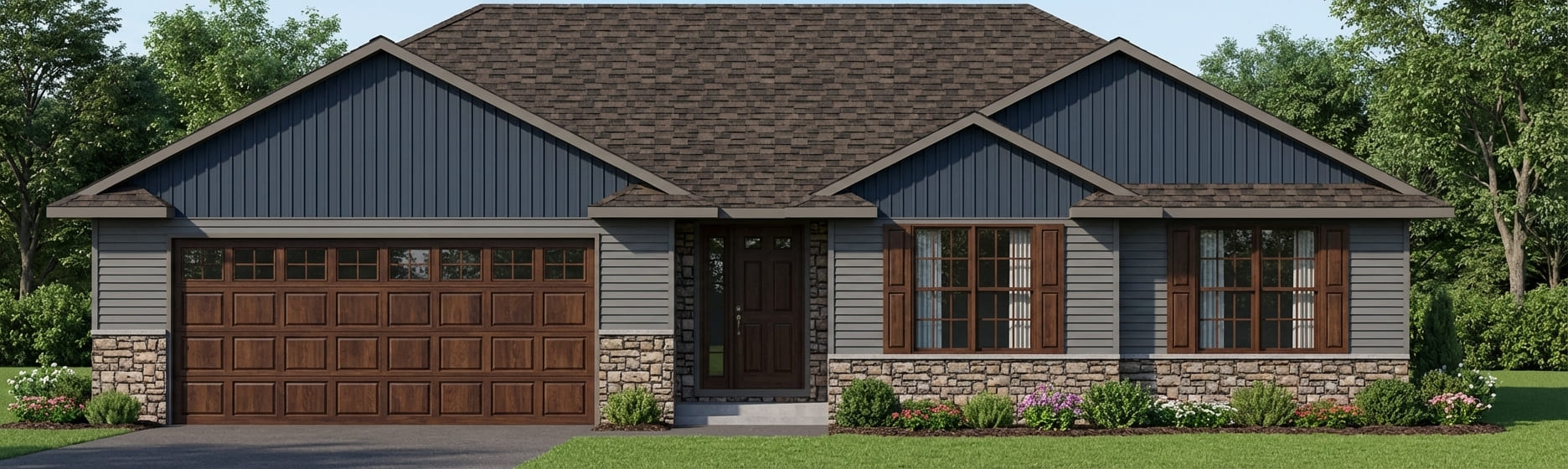 Another great custom ranch design if your hearts are big but your family is small! This 3 bedroom home has a great use of space. Everything you need in just over 1400 square feet. The kitchen is set in a corner overlooking the dining room and living room making this area very free flowing. The master bedroom is tucked away in the back corner offering additional privacy and the 2 additional bedroom off the entry are great for overnight guests and children. A main floor laundry off of the oversized 3 stall garage is a great way to keep the soiled outside clothes out of the main living area! This design also offers 2 full baths and plenty of closet space. Feel free to finish off the basement to gain a little extra area to stretch out!